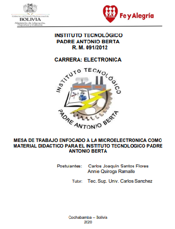 MESA DE TRABAJO ENFOCADO A LA MICROELECTRONICA COMO MATERIAL DIDACTICO PARA EL INSTITUTO TECNOLOGICO PADRE ANTONIO BERTA