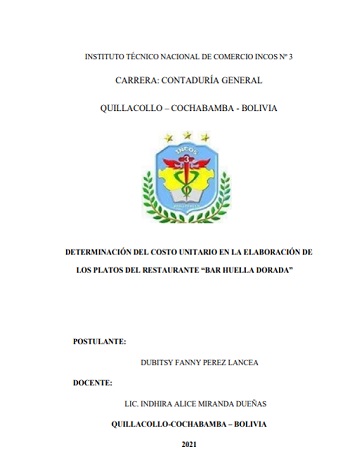 DETERMINACIÓN DEL COSTO UNITARIO EN LA ELABORACIÓN DE LOS PLATOS DEL RESTAURANTE “BAR HUELLA DORADA”