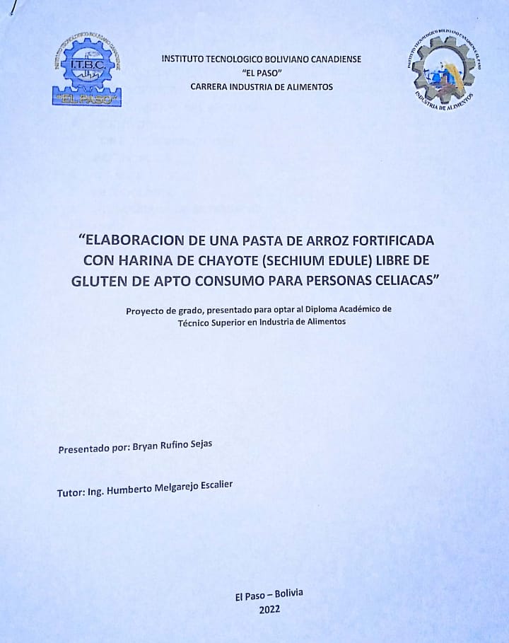 Proposito principal de la elaboracion de una pasta a base de harina de arroz fortificada con chayole se efectua con el fin de tener alimento saludable y tolerante al alcance de personas que sufren de la intolerancia al gluten