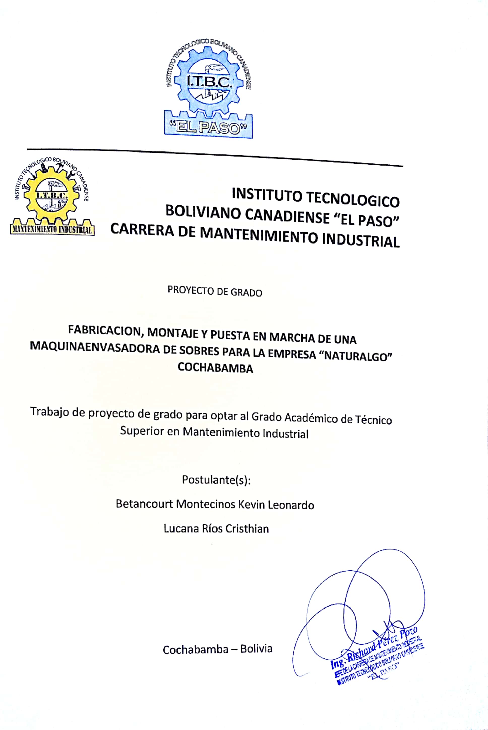 Instituto Tecnológico Boliviano Canadiense "El Paso" - Carrera Mantenimiento industrial